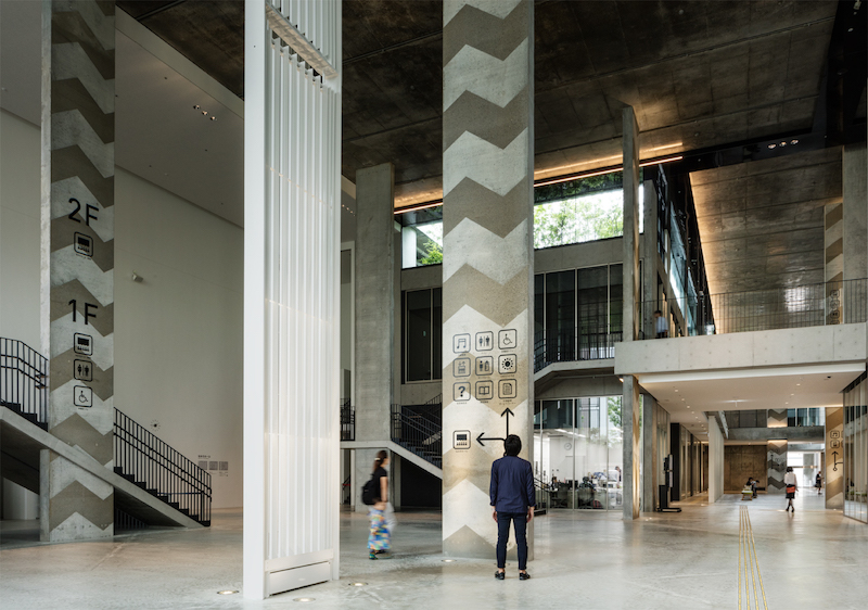 香椎副都心公共设施位于日本福冈市东区千早,占地11600平方米,拥有超挑高的空间,装修风格偏工业风。Uji design受邀为其进行导视系统设计。