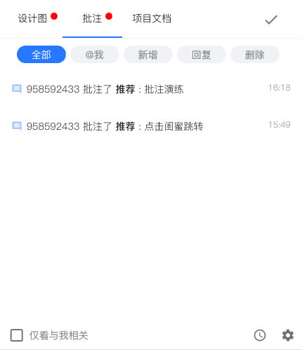 批注信息、添加或删除设计图等全部操作都会发送给你的团队成员