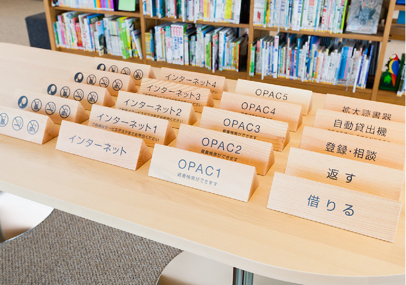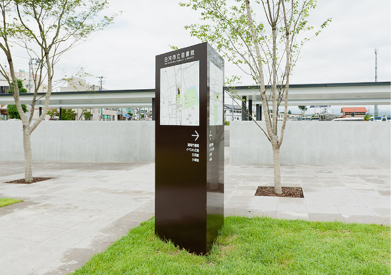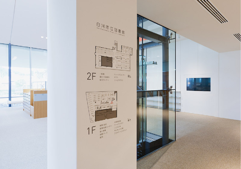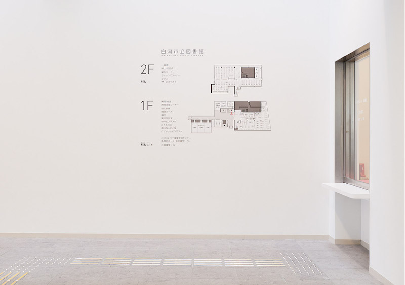 该图书馆位于日本福岛县白河市,拥有完善的配套设施,旨在带给人们舒适的阅读空间。Uji design受邀为其进行导视系统设计。