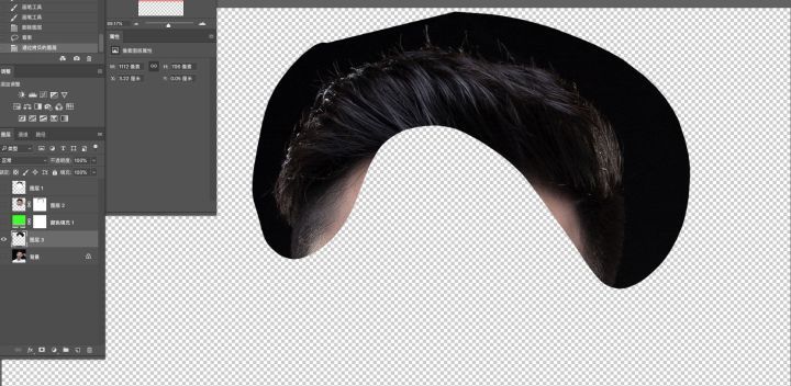 从背景层中选取头发素材,用来补齐图层2头发空缺的部分