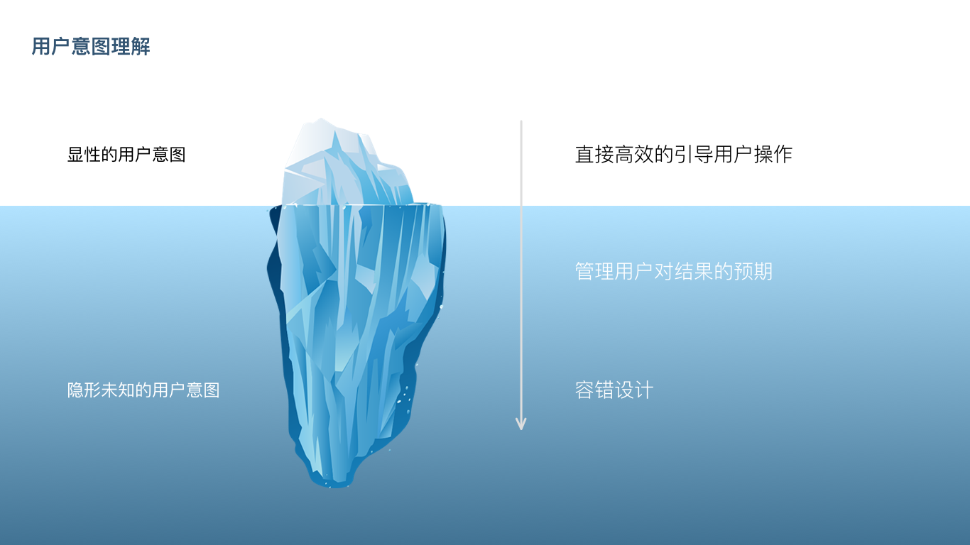 在这里需要引入一个概念,在人机交互的体验中,机器不能完全准确的预估用户在当前的意图,但是针对上下环节操作,可以在用户预期与实际结果中掌握平衡点。这叫做『用户意图理解』。