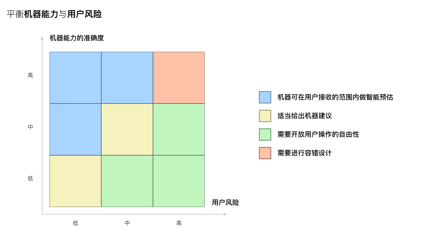 我们需要在『机器能力』与『用户风险』之间寻求合适的设计目标来达到平衡点。