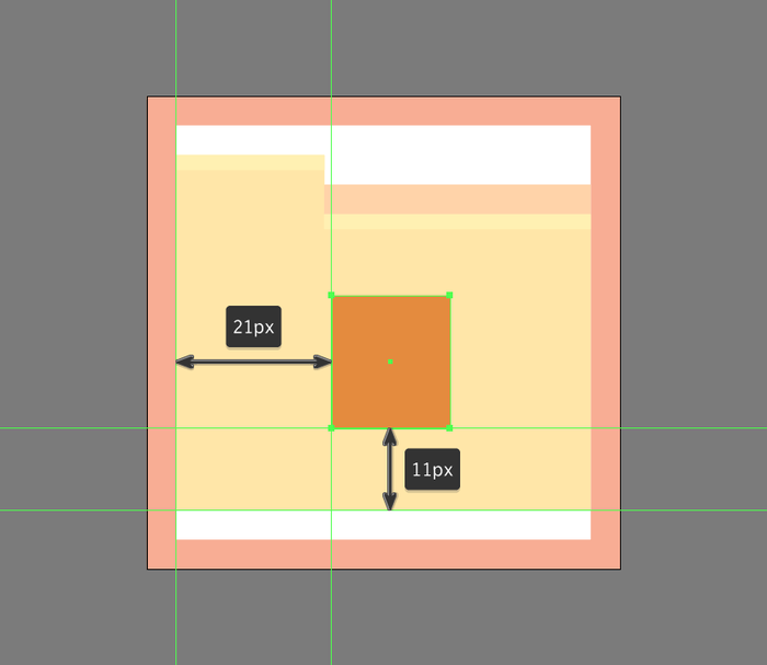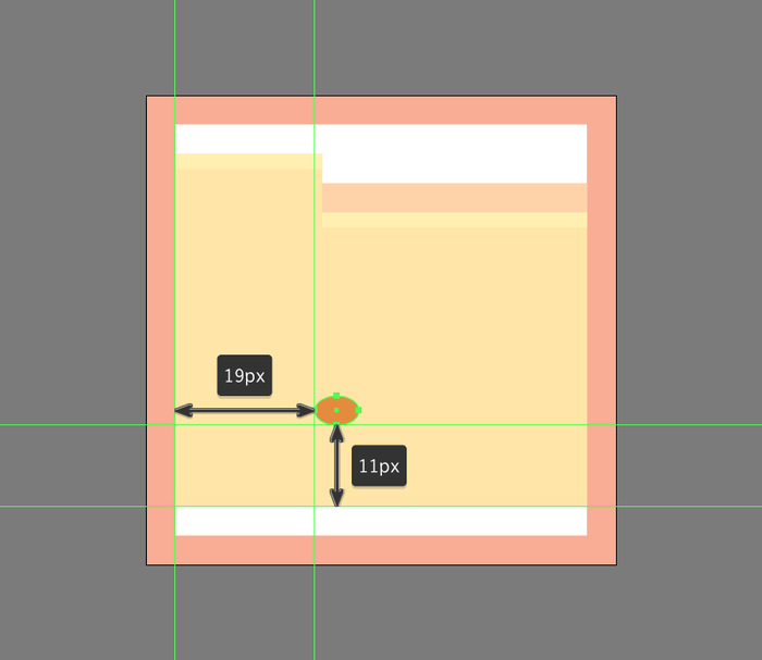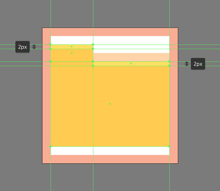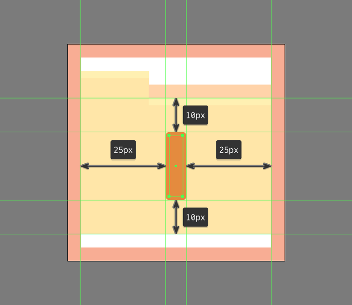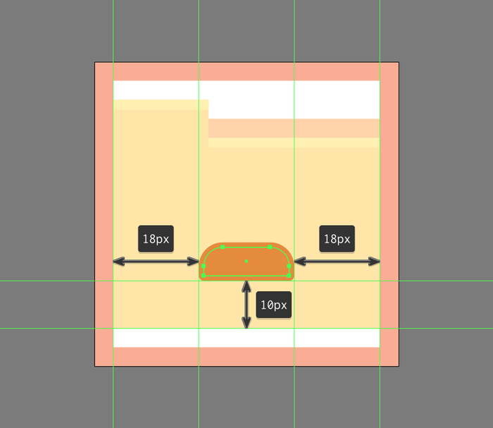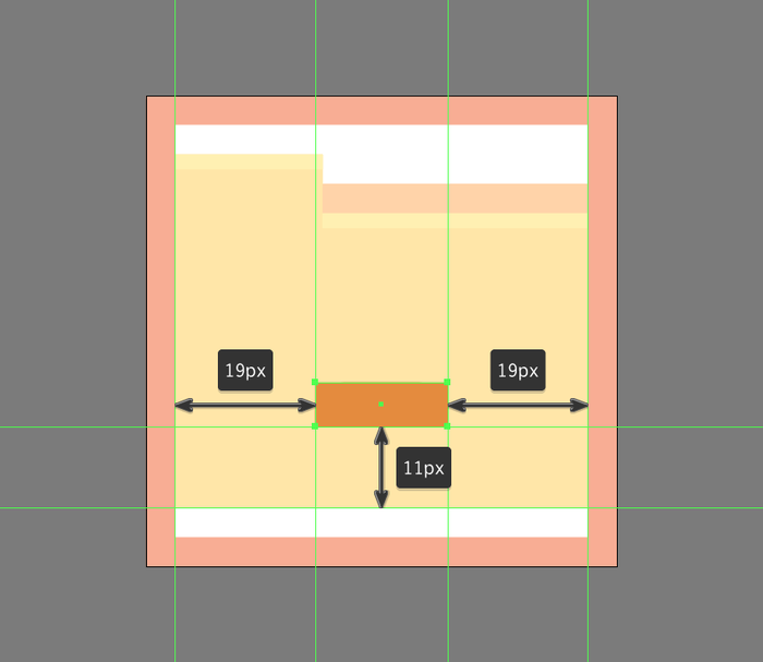 使用20 x 8 px矩形(#FFCD50)添加较小的上部,定位在上一个形状的顶部,将其对齐到其左边缘。