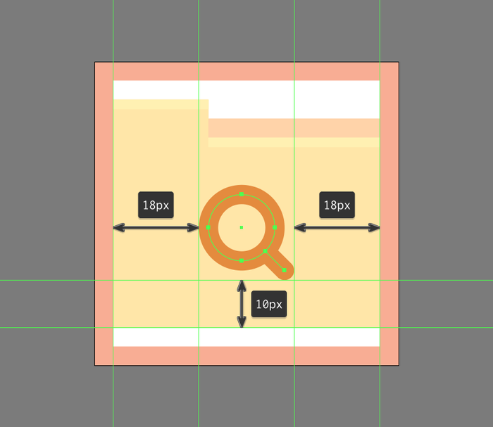 完成当前图标,双击创建的图形将其隔离(右键单击>隔离所选组),然后使用直接选择工具(A)选择锚点,将它们推到顶部2 px距离。完成后,按Esc键退出隔离模式,然后选择并组合(Control-G)所有符号的组成形状,然后对整个图标执行相同操作。