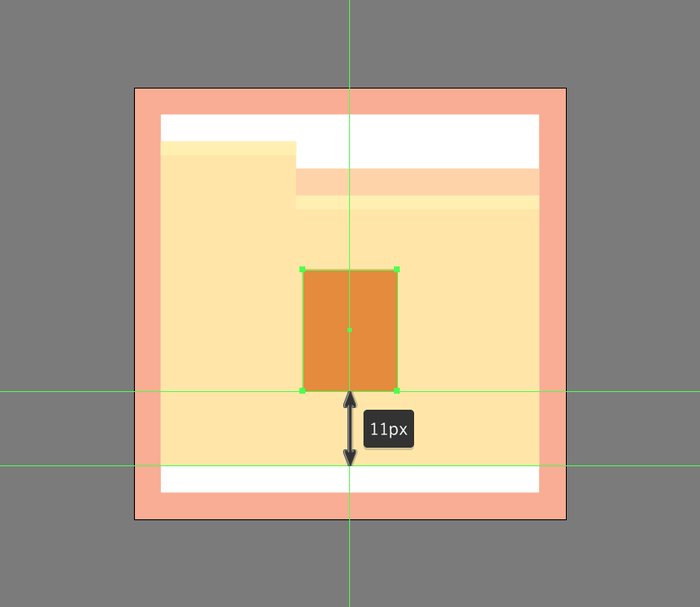 使用矩形工具(M),创建一个12 x 18像素的矩形,我们将使用#E58C3C进行着色,然后将中心对齐到较大的文件夹,将其定位在距离其底边11 px的位置。