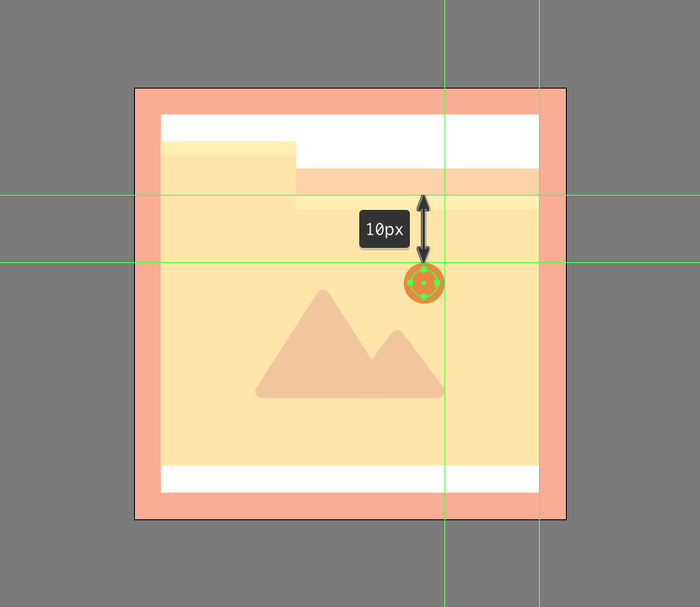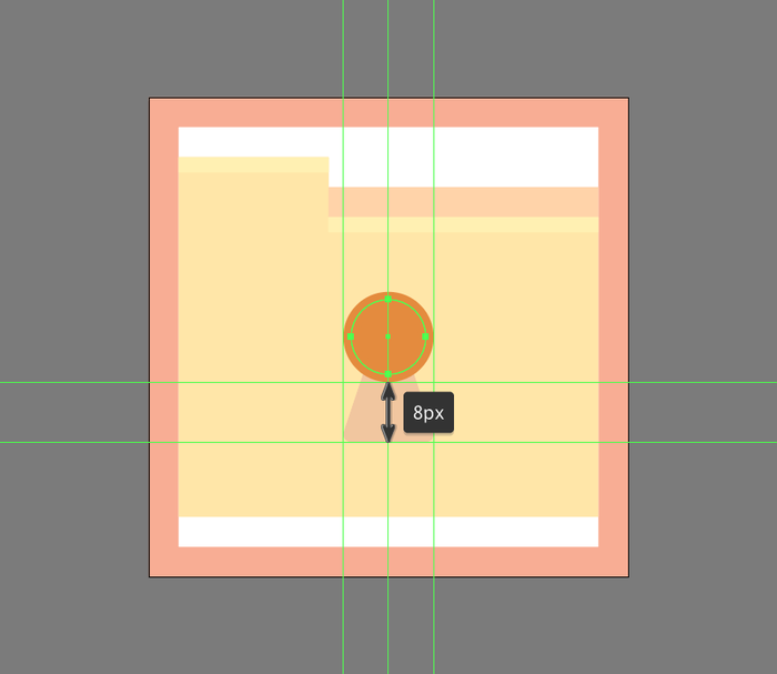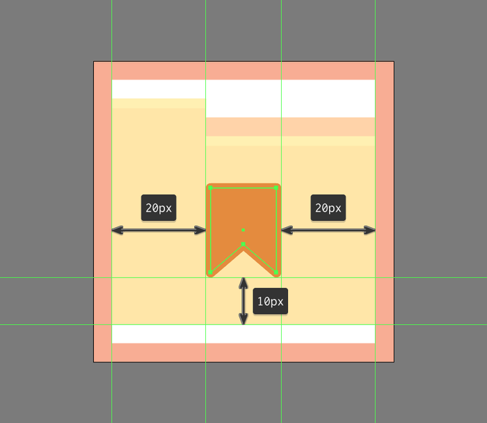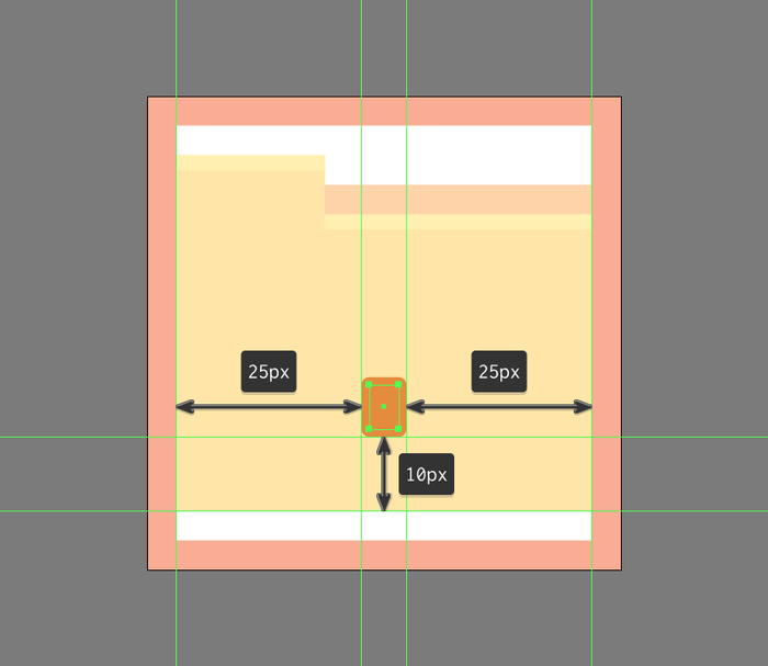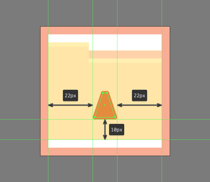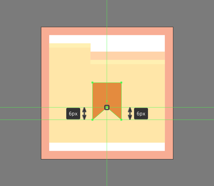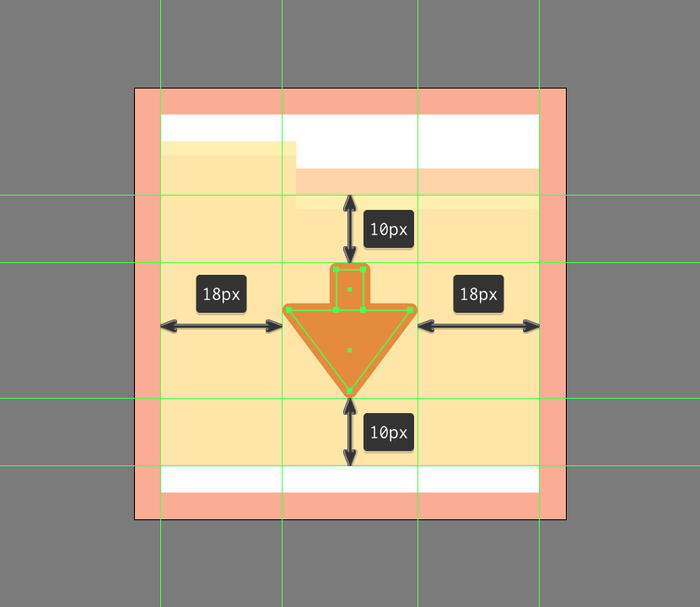 首先使用4 x 6 px矩形(#E58C3C)创建箭头的下部,给该矩形创建2 px宽的轮廓(#E58C3C),对其进行分组(Control-G),然后将中心对齐到底层文件夹,将它们定位在距离底边10 px的位置。