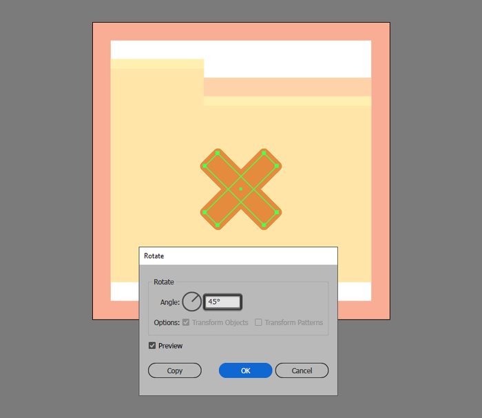 将加号转换为x,选择加号图形变换角度(右键单击>变换>旋转>45º)。