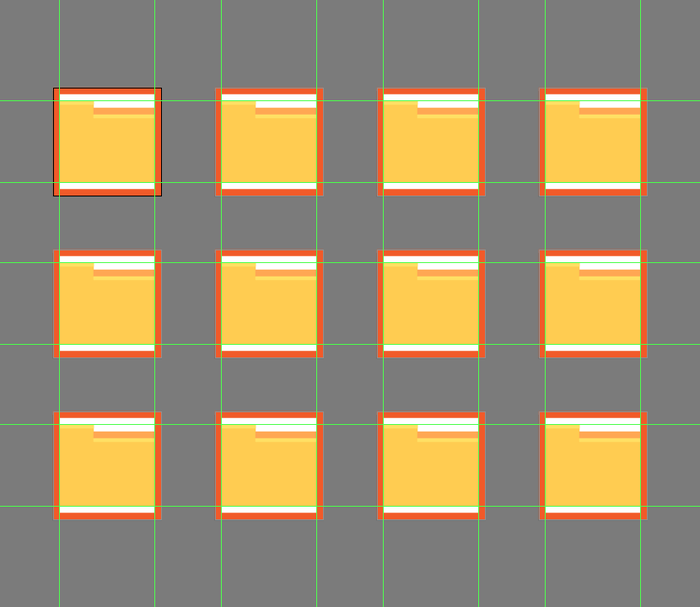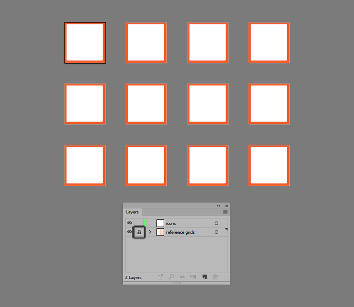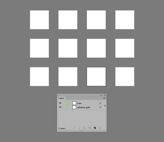 当我们完成了参考网格的创建,我们可以继续下一层(这将是第二层),我们开始创建十二个图标需要使用的空白文件夹。