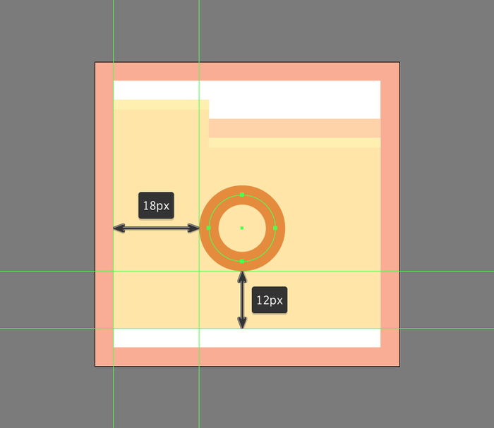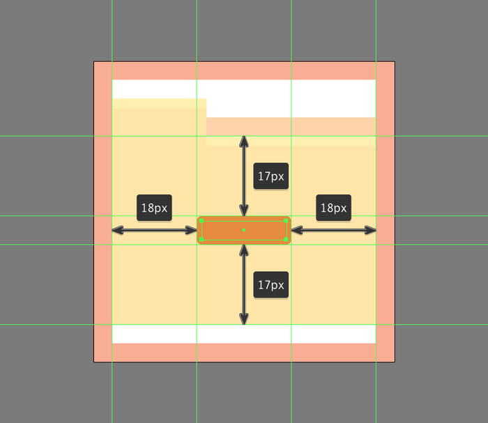 使用18 x 12 px的矩形创建箭头的主要形状,并使用#E58C3C进行着色,然后将中心对齐到之前的形状并定位到参考图像中看到的上边缘。