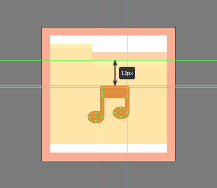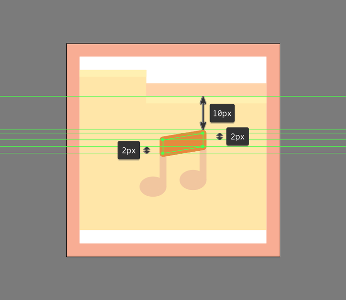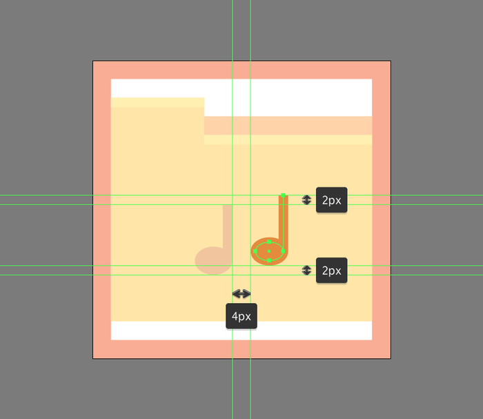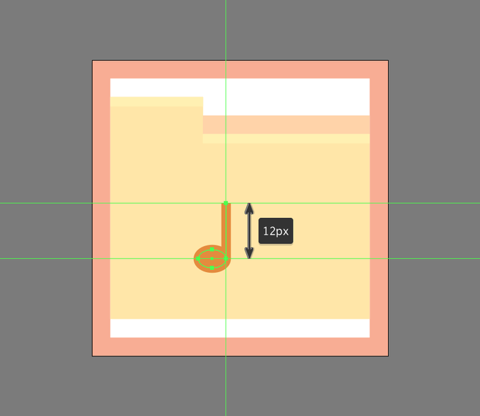创建一个轮廓2 px的(#E58C3C)12 x 4 px矩形(#E58C3C)和音符柄部叠加,将图像进行分组(Control-G),如参考图像中所示。
