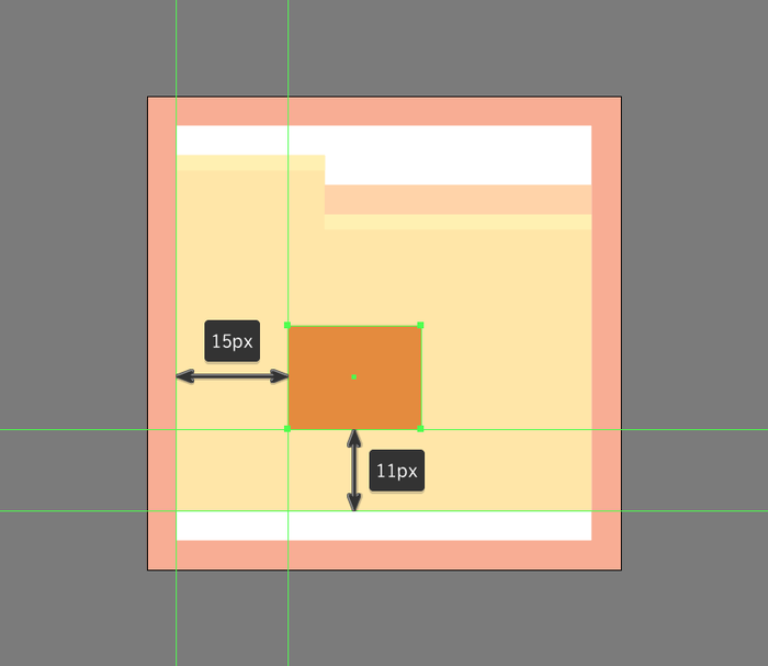 创建18×14像素的矩形,使用#E58C3C着色,然后调整到距离底部11像素左边缘15像素的位置。