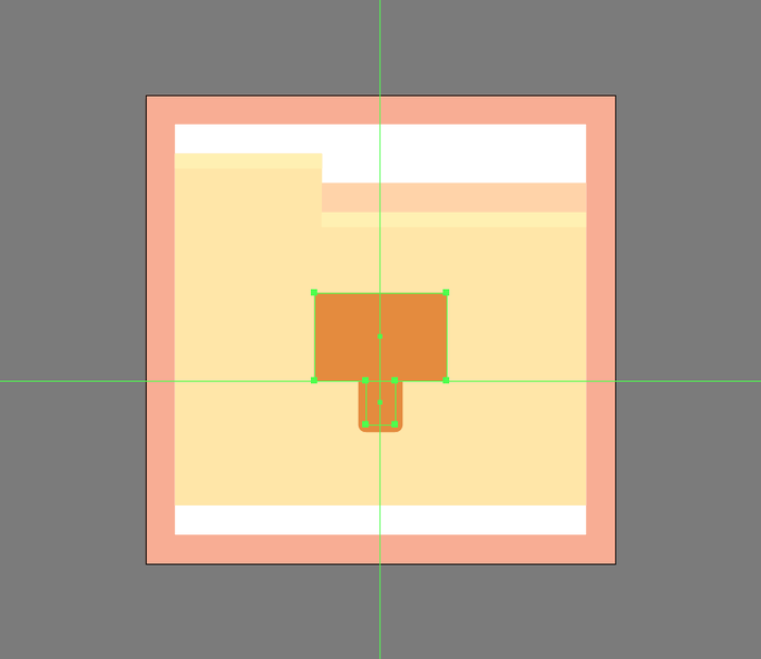 创建10 x 12 px矩形做为钥匙孔的下半部分,使用#E58C3C进行着色,然后将中心对齐到较大的底层文件夹,放到距离其底边11 px的位置。