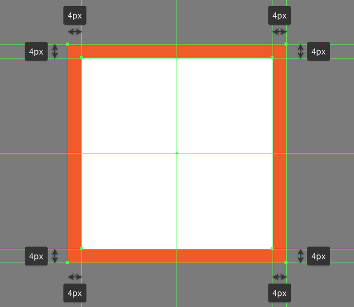创建另一个较小的56 x 56像素正方形(#FFFFFF),作为有效绘图区域,从而为我们提供全面的4 px保护填充。完成后,使用Control-G键盘快捷键选择两个形状并将它们组合在一起。