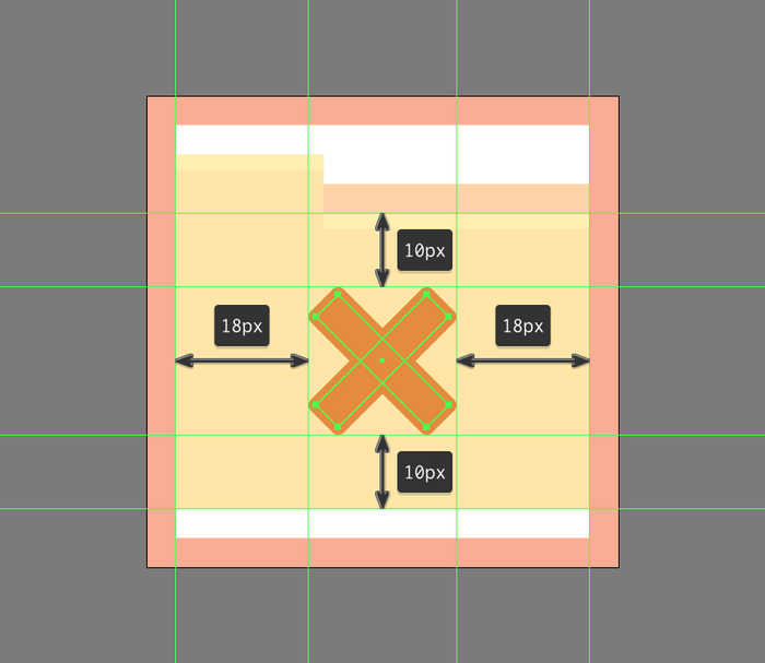 创建4 x 18 px矩形(#E58C3C)创建加号的垂直部分,创建2 px宽轮廓(#E58C3C),选择分组(Control-G)然后定位到中心底层文件夹。
