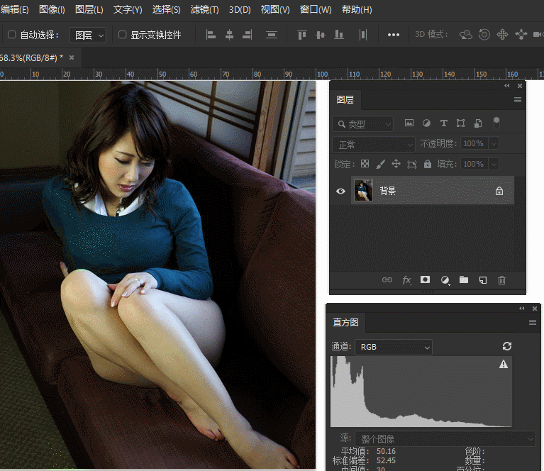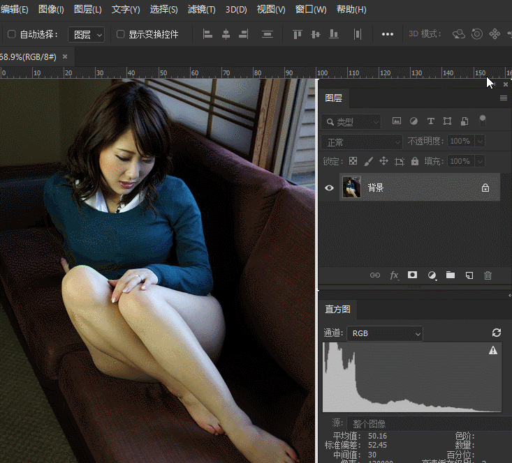 使用调整层的亮度对比度对图片进行更改,而不会损失原图信息。
