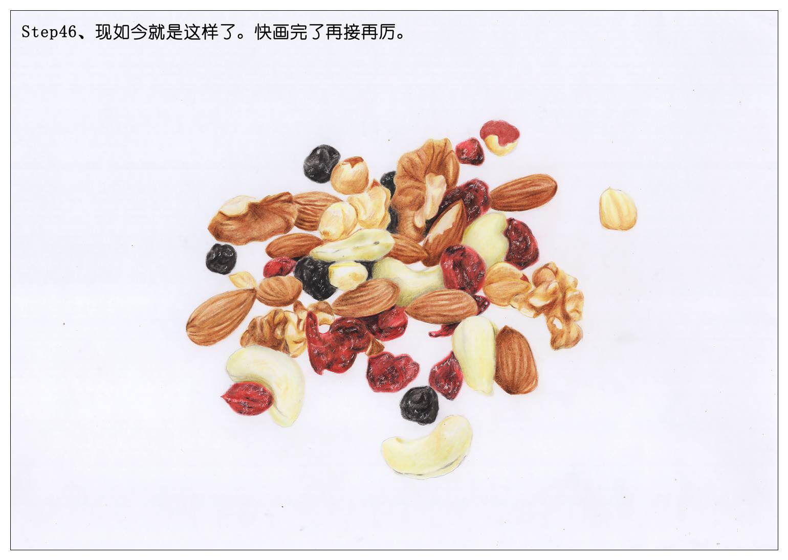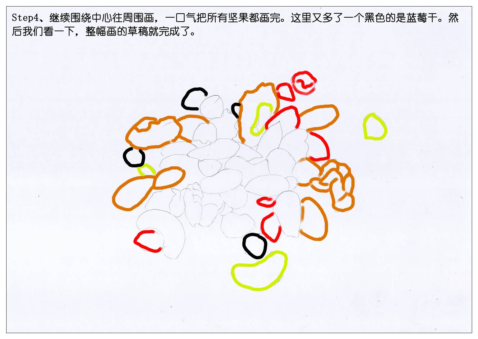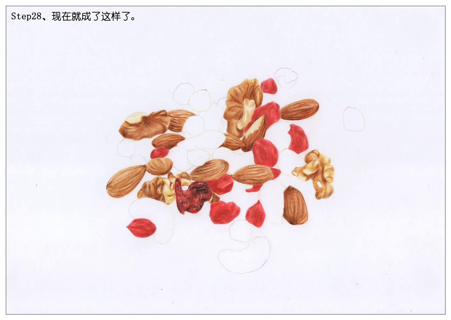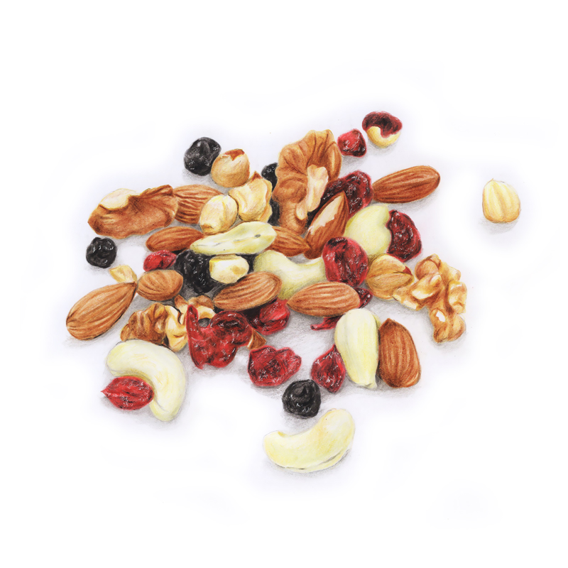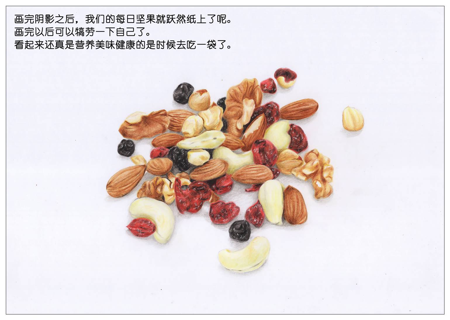 所以我们也赶新潮,画一袋每日坚果当年货吧。