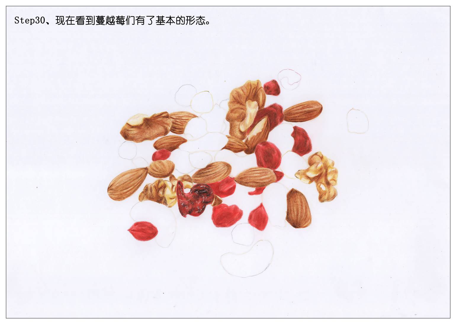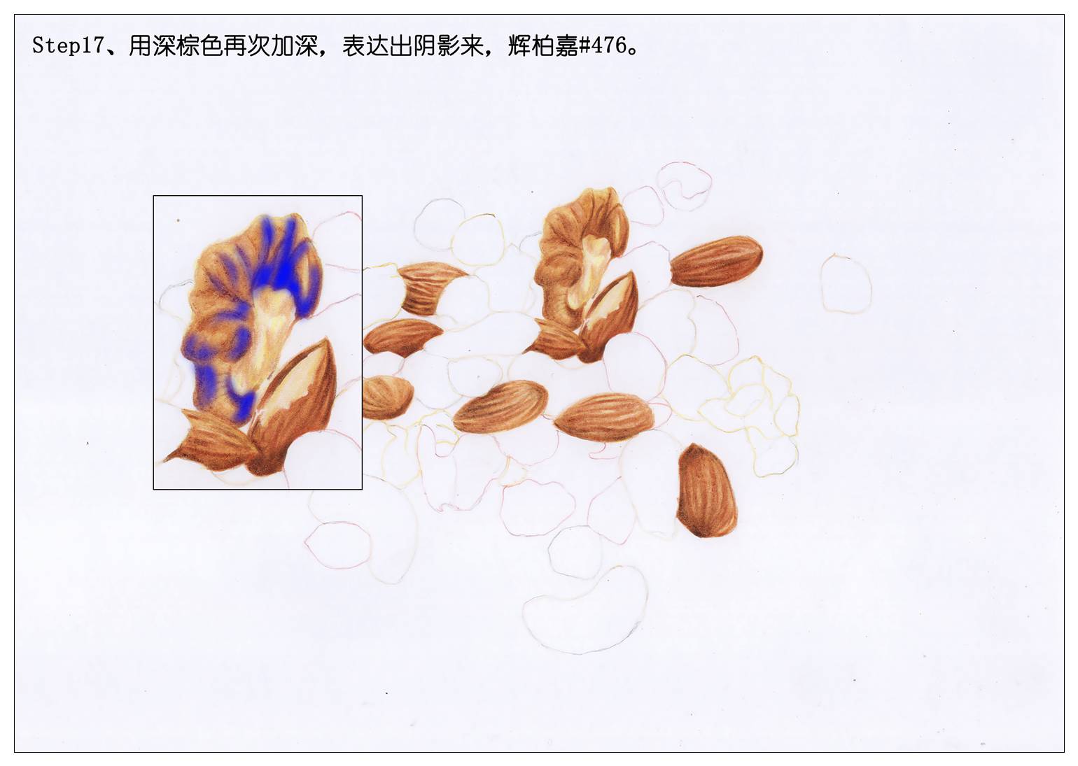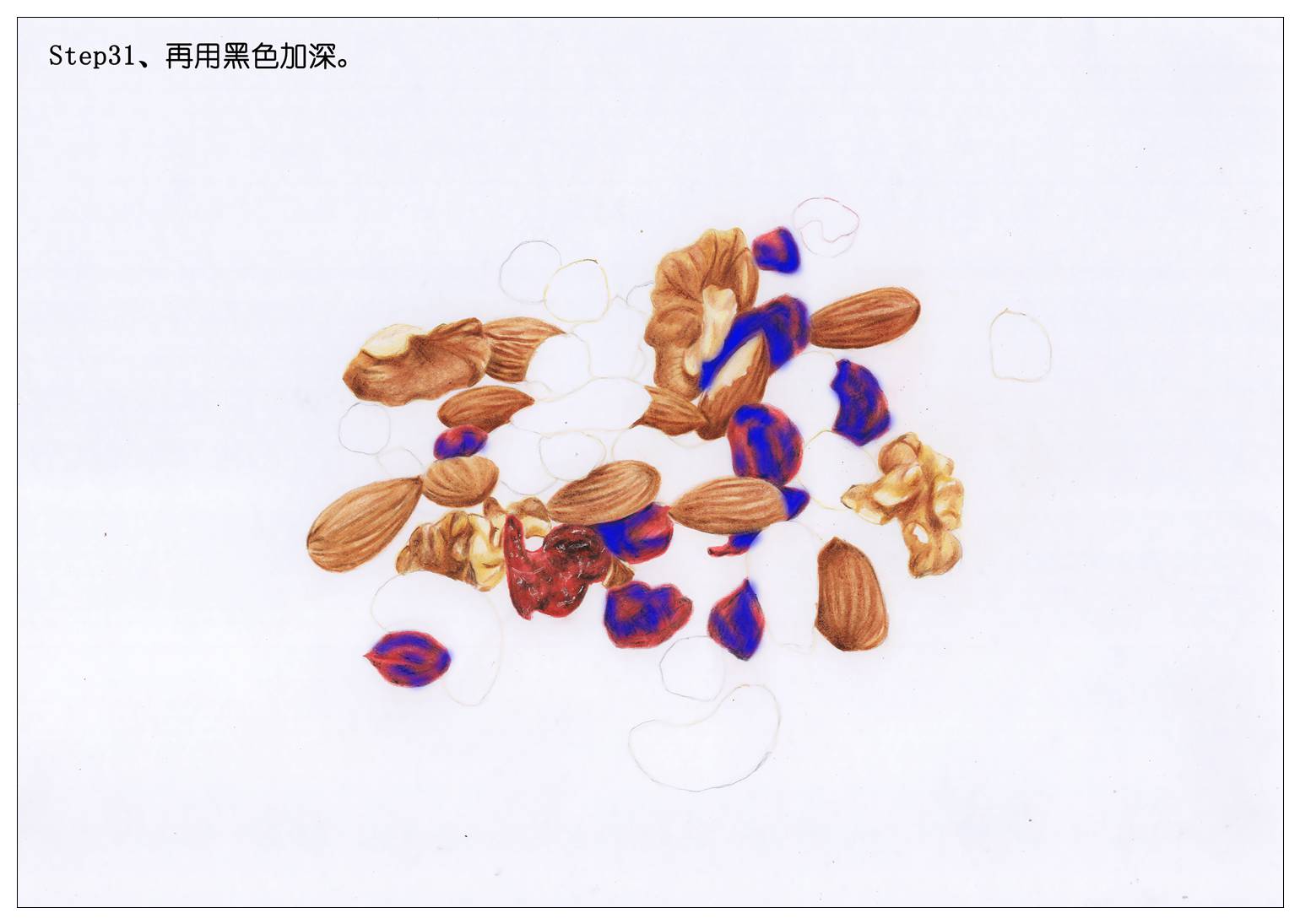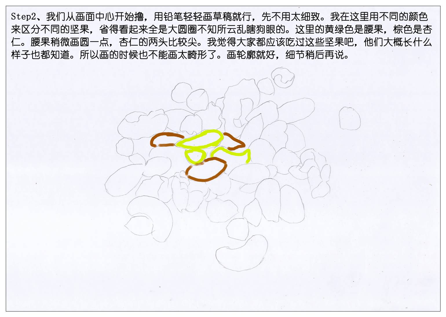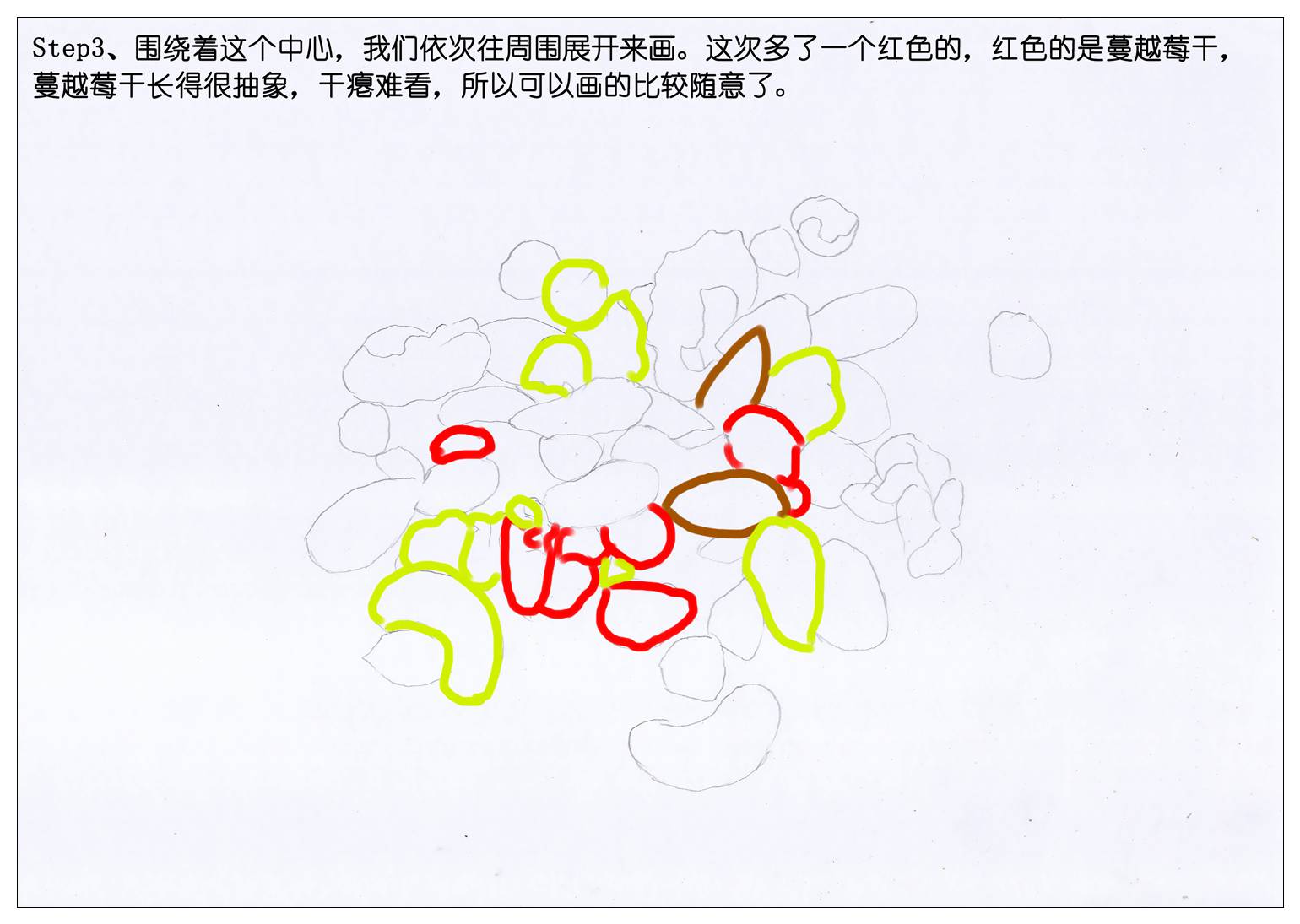 所以我们也赶新潮,画一袋每日坚果当年货吧。