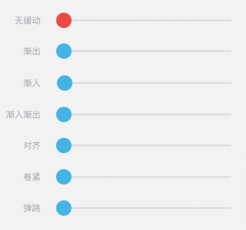 目前,XD 中之提供了最常见的几种缓动类型,我们可以通过下面的对比图例了解一下。