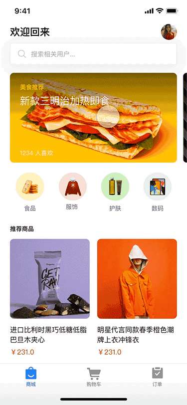 好了,相关的功能解释完了,现在就要拿些真家伙出来演示一下。下面,我通过之前做过的一个 APP 案例,来完整应用一遍 XD 的动画功能,先看一看完整的效果。