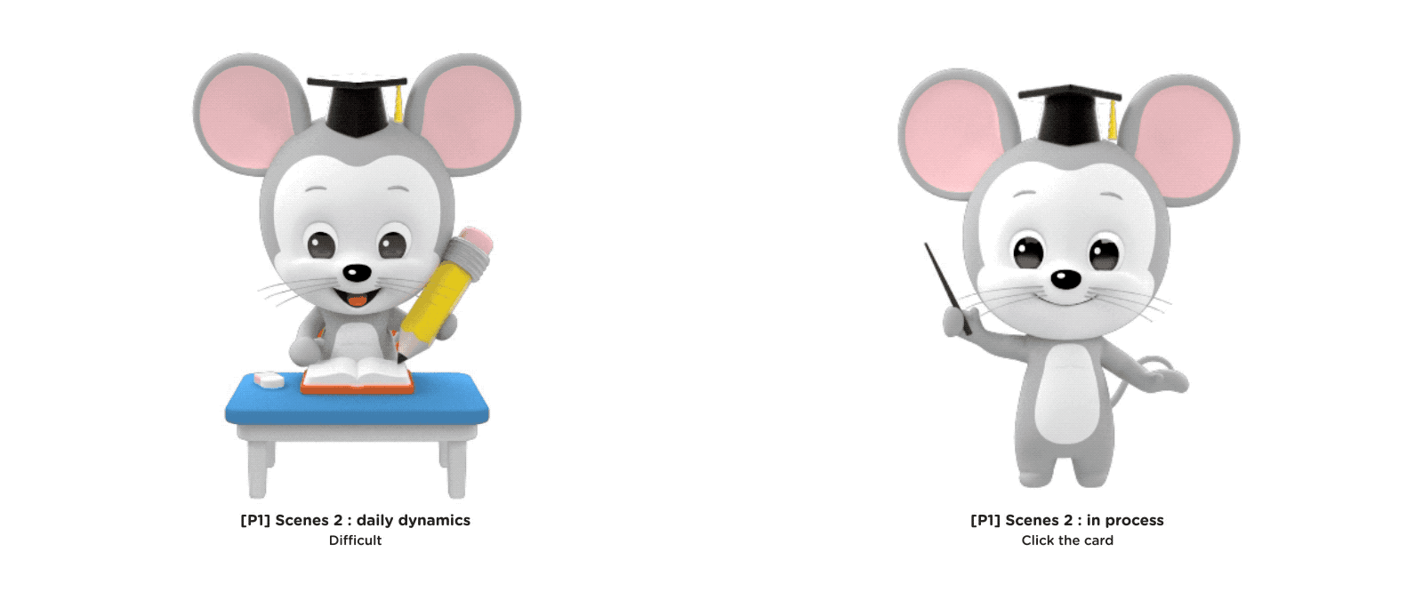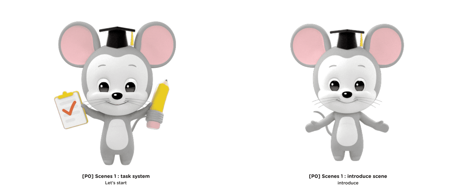 The key to character face animation is to analyze the characters and to define the concepts accurately. ABC Mouse is a friend in educational applications who assists users to learn. Thus, I made assumptions of some interesting circumstances that might possibly happen during the learning process and expressed it in 3D to make it more solid and comic.