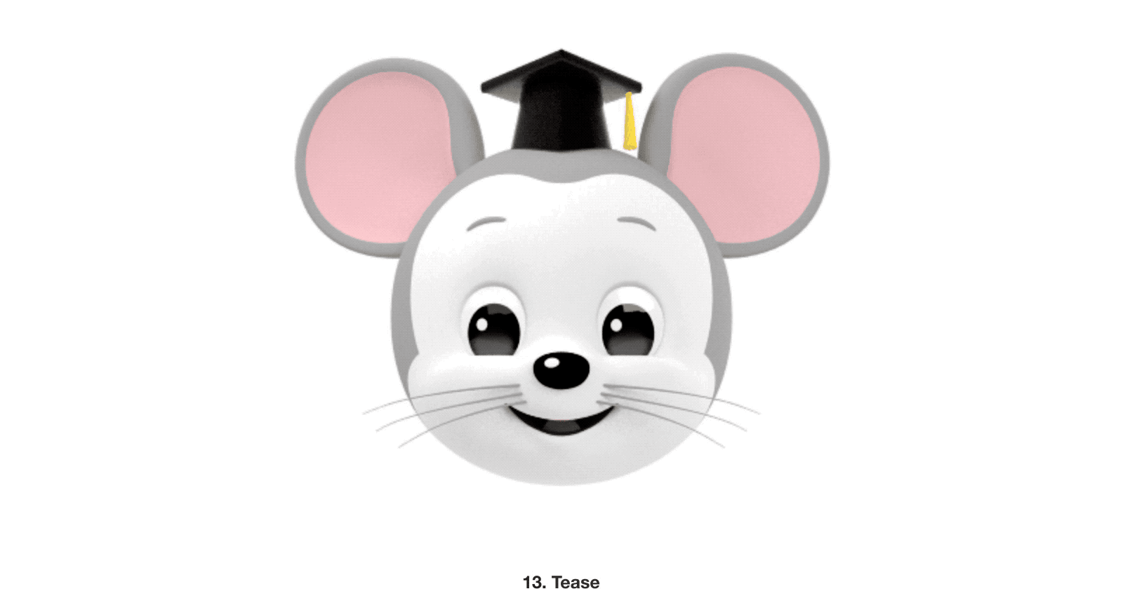 设计角色动画时,关键是分析角色性格来决定风格。ABC Mouse 是在 App 里帮助用户学习的朋友,所以我们针对学习过程中有可能发生的各种情境,利用 3D 角色来做有趣的互动,以幽默的形式来引导用户。