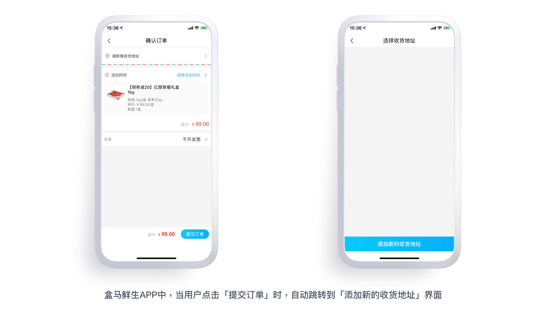 而在「盒马鲜生」中,这个导引细节处理的相对合理连贯,更加符合用户的操作流。