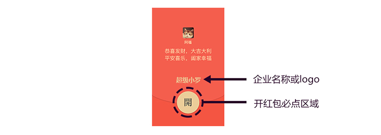 为了起到一定的展现企业形象的目的(满足BOSS需求),可以尝试放在开红包的按钮附近,因为这是我们打开红包必点区域,所以比较容易被用户注意到。