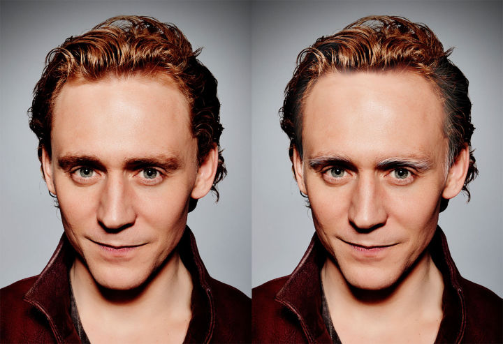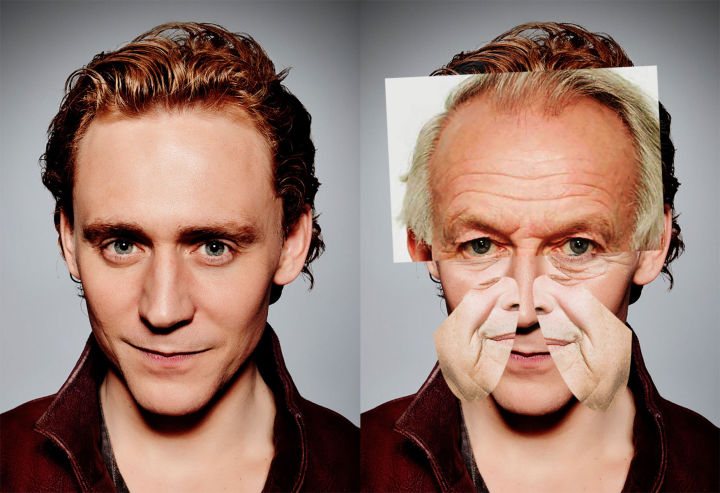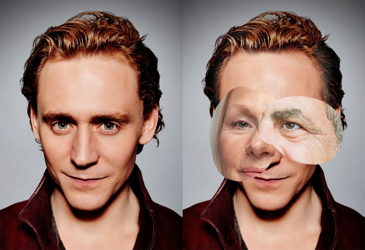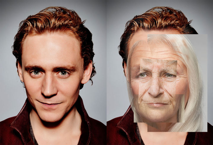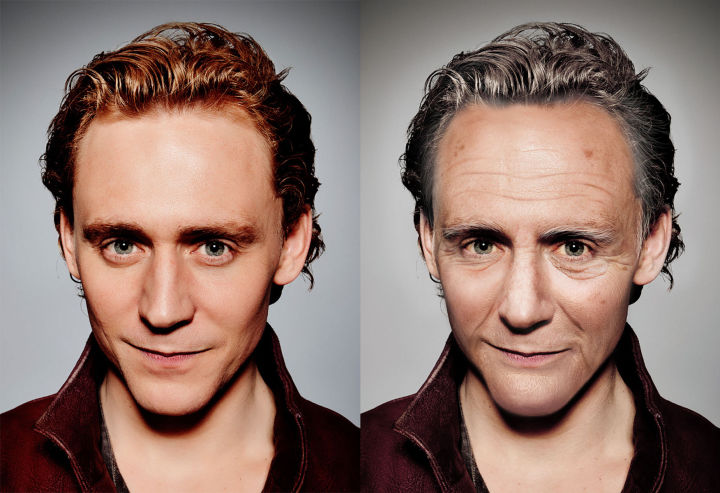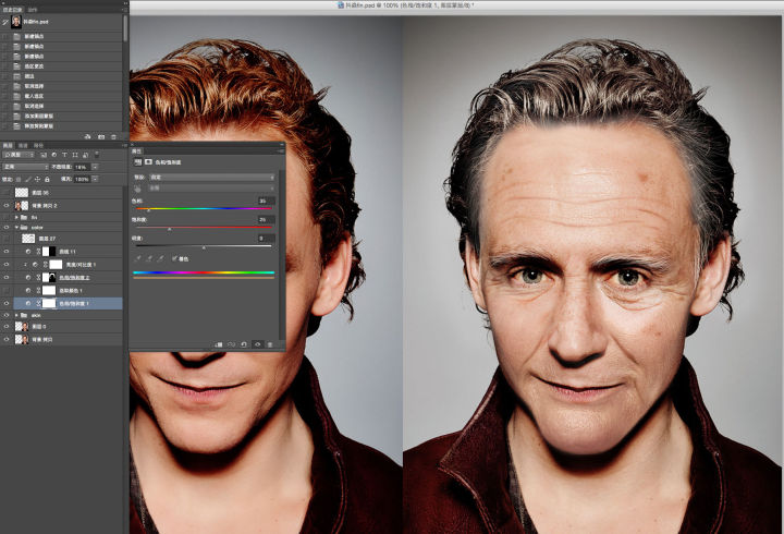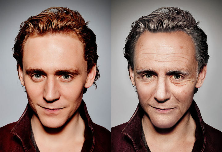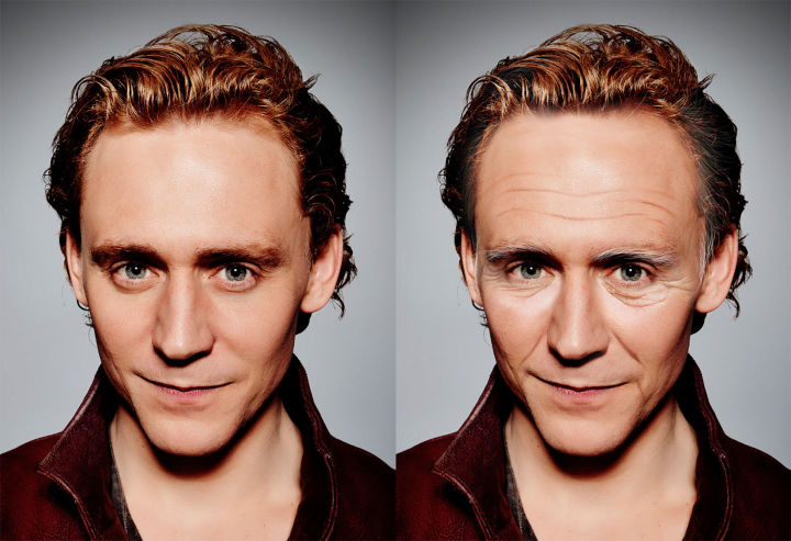 通过上面一组男女神不同年龄段的对比我们可以看到,衰老在肖像上主要体现在皮肤松弛、发际线后移、毛发稀疏掉色上——这就是我们的切入点。