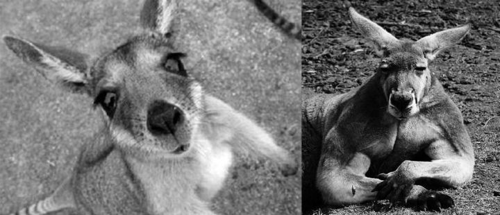 别擦显示器了,上图右边是我用灰色画笔画出的老年斑,放了个白色的底方便各位观察而已。在把图层模式改为叠加之后,我们得到了长着老年斑的抖森:
