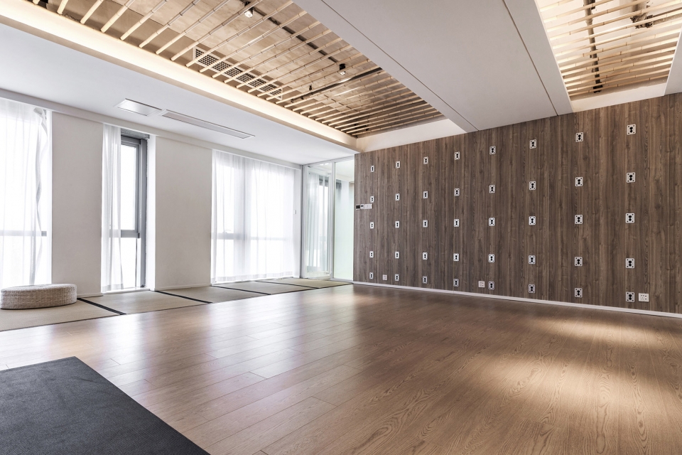 设计师以竹子为主题,和其要体现的宁静紧扣,通过竹林的构建手法使之融入室内,希望以物质空间为载体,展现空间功能的思想性。材料方面,用质朴的水泥漆,温润的木饰面板,黄色的竹成为虚墙,青色的竹代表生机,如处山林间,飞云两三,幽篁流水,片刻静也。