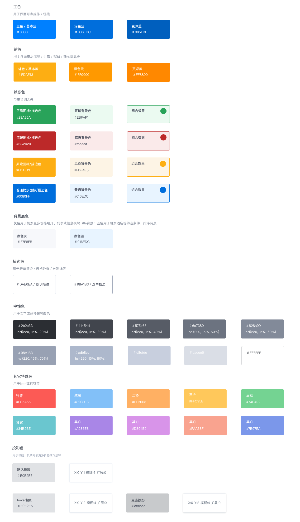 根据产品的UI样式,可能还包含背景底色、描边色、投影色、特殊色等