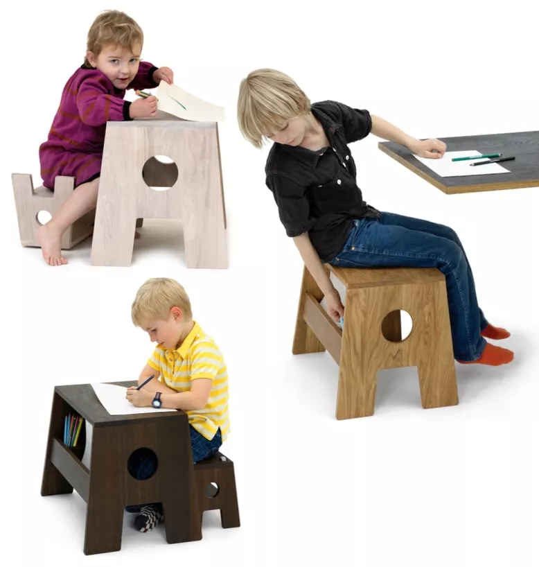 Stool 对五岁以下小孩来说,它是一个桌子;对大点的孩子来说,他是一个凳子,并且具备收纳功能。