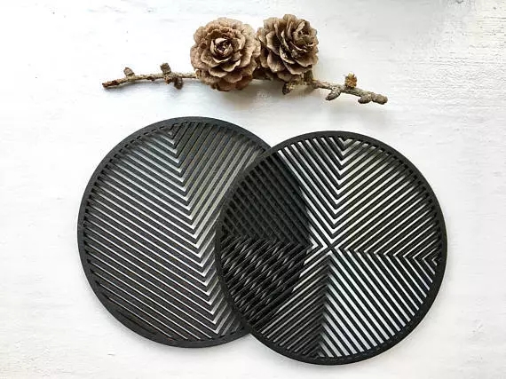 设计师 Zsuzsanna 对几何图形、线条棱角情有独钟,把莫列波纹以各种不同的形式表达在了原木杯垫上。