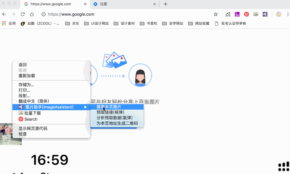 5.右键选择图片助手—提取本页图片,跳转后—全选—下载选中(注意先点击下载配置,关闭下载前询问设置,要不就要点击n次确定才能保存成功哦)。经过了一系列的操作后,花瓣画板的大图就尽数收入囊中啦,是不是很happy!