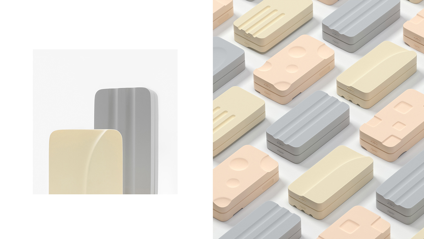 EATTAE是一套便携式餐具的系列创新产品,正如EATTAE名字的由来,每套餐具都是正反相对,通过旋转的方式打开取出。设计的目的是希望提高便携式餐具的使用便捷度,创造有趣而新鲜的使用体验,从而推广使用自带餐具的饮食生活习惯。整体设计以简约而亲和的视觉呈现,每一组餐具都以提炼的几何图形来表示,选择通过机理与细节的表达突出产品的设计感和趣味性,在使用时,只需像打响指一样旋转上下盒,即可打开取得餐具。 整个使用过程简单便捷又趣味满满,为使用便携式餐具创造了别样的体验。