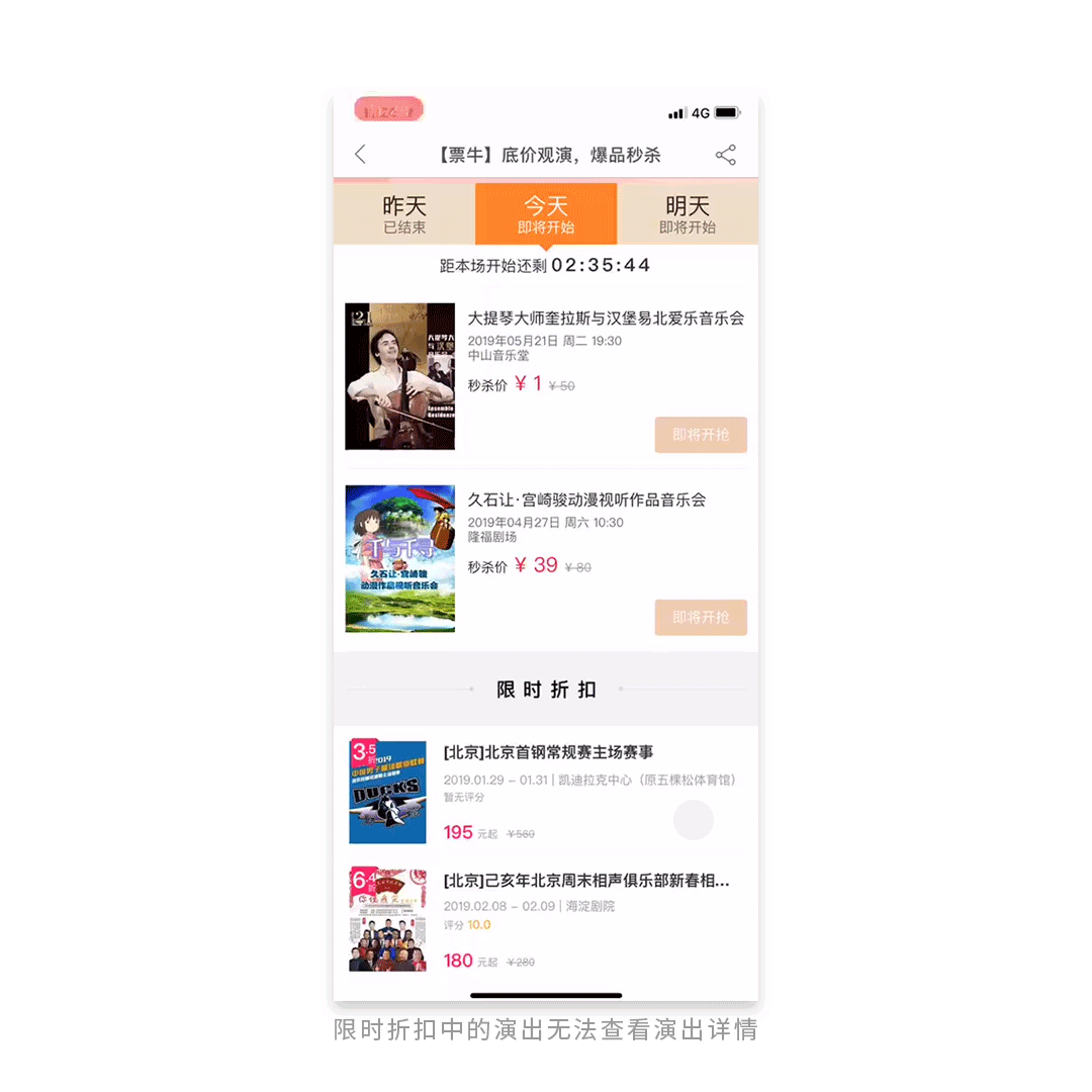 - 限时抢购的演出无法查看详情 -