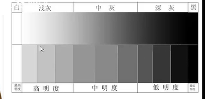 明度是一个纵向的色彩比例关系,灰度就是是横向发展的。