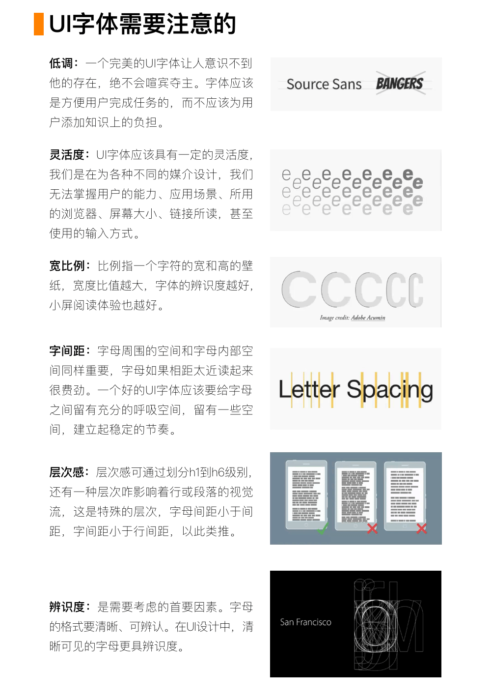 简述UI设计中的字体设计基础、注意事项及应用原则。