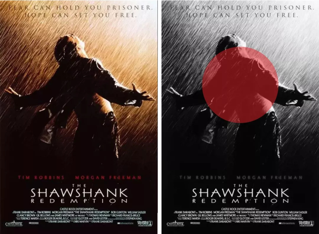 图二《肖申克的救赎》主题海报同样采用了仰视的视角去表达,和电影主旨相通,如经典台词:“有的人的羽翼是如此光辉,即使世界上最黑暗的牢狱,也无法长久地将他围困!”诠释了自由崇高的概念,表达了对自由的向往与对黑暗的抗拒。