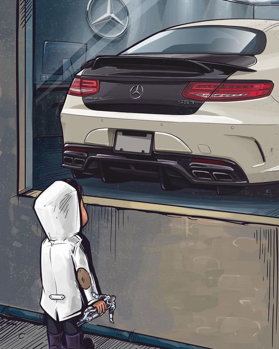 图一中小孩抬起头的头望向奔驰,从某种程度暗示了成年人对于奔驰的渴望,或许画面中再加一句“小时候的梦想……”这种煽情的文案,那么这个海报就完美了。