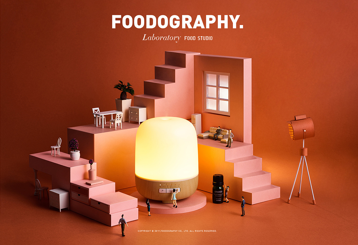 2:缩小,缩小,再缩小,通过缩小画面中常见的一些物体的比例,而夸大现实生活中某些比主要要远远大于的物体的比例,使之打破常规,形成画面戏剧性的视觉效果,塑造出画面焦点。