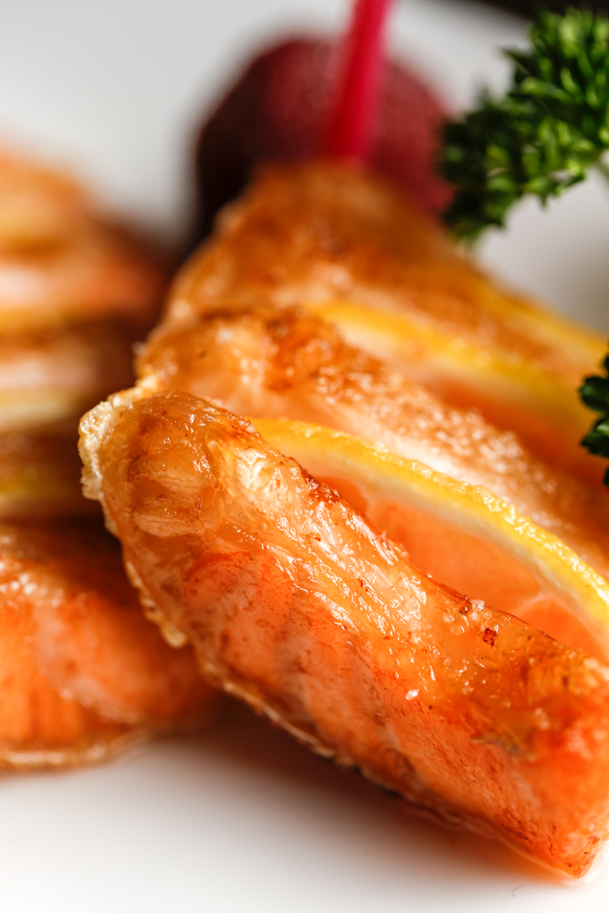 一道创新的柠檬烤三文鱼,美味值得推荐。