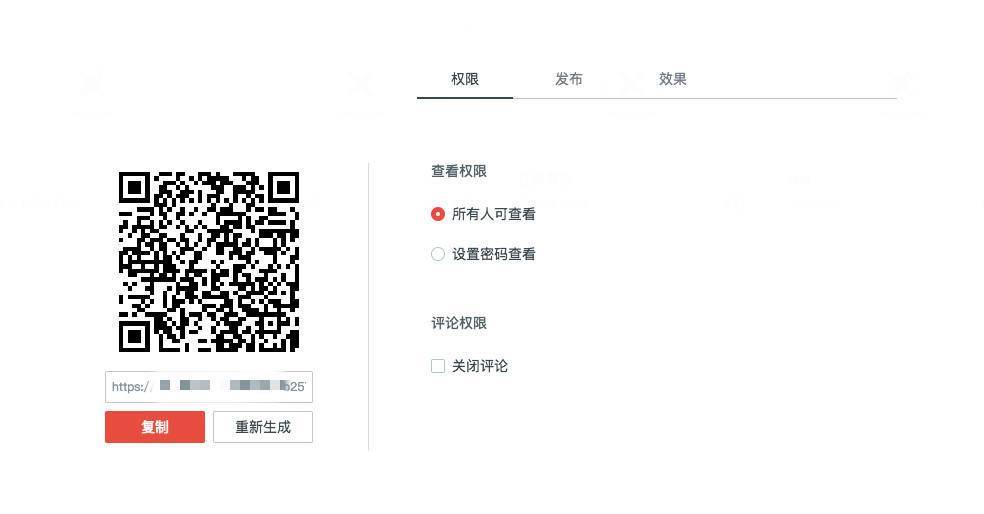 你还可以在分享页面设置“权限”和“效果”,保证项目预览的私密性和顺畅性。
