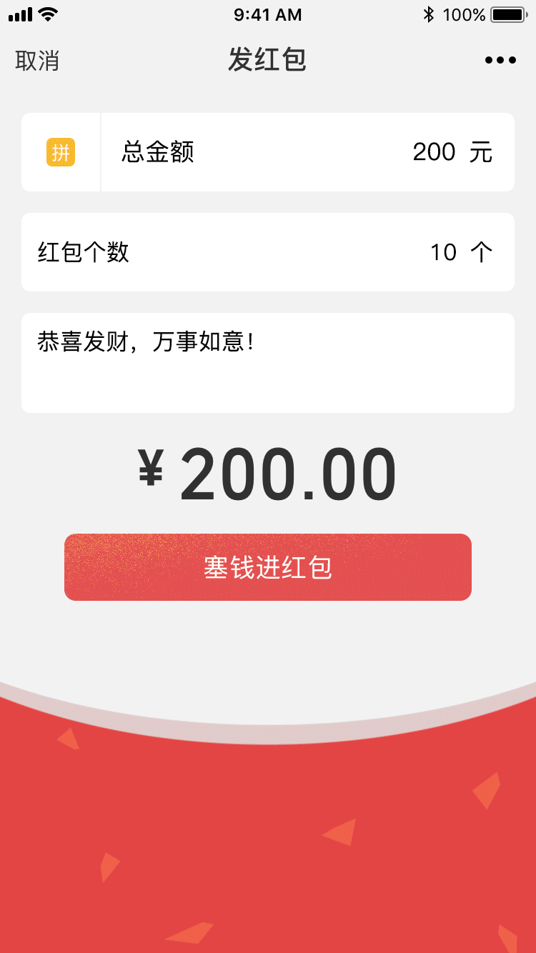 听觉——在装红包、发红包、拆红包的时候配上相应的声音,情景感更强