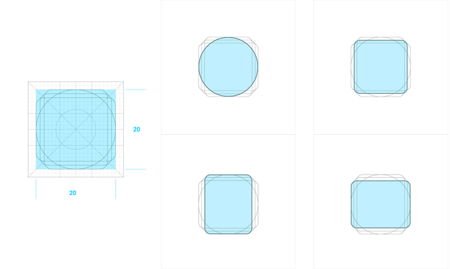 图标网格:图标的内容区域限定在活动区域的内部 。