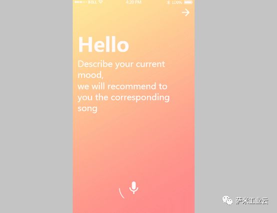 比如这个音乐应用程序的界面左上角的光源。以它为中心,页面中单独的色彩元素不断扩散开来,结合成一个华丽的,令人眼花缭乱的渐变。并且对整个界面起到了非常棒的效果。