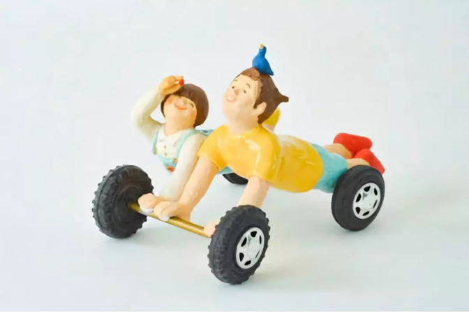 于是当时的冈步就想到要把这种辛勤工作的状态和惊讶的心情表现在作品上,从那时候开始就以人物为原型开始了创作,为他们装上了轮胎。