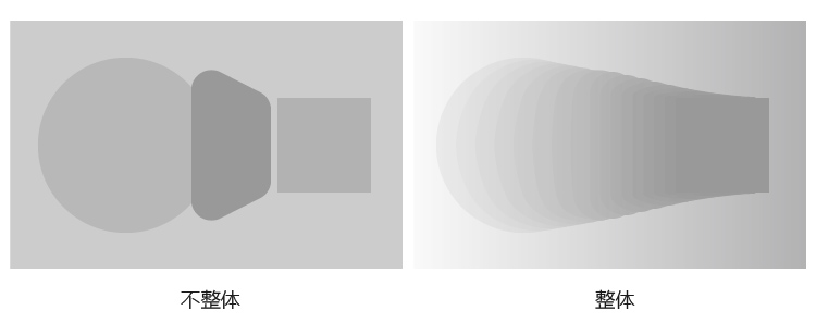 元素与元素之间有过度的话,它们的衔接就会更自然一些,也会更像一个整体。