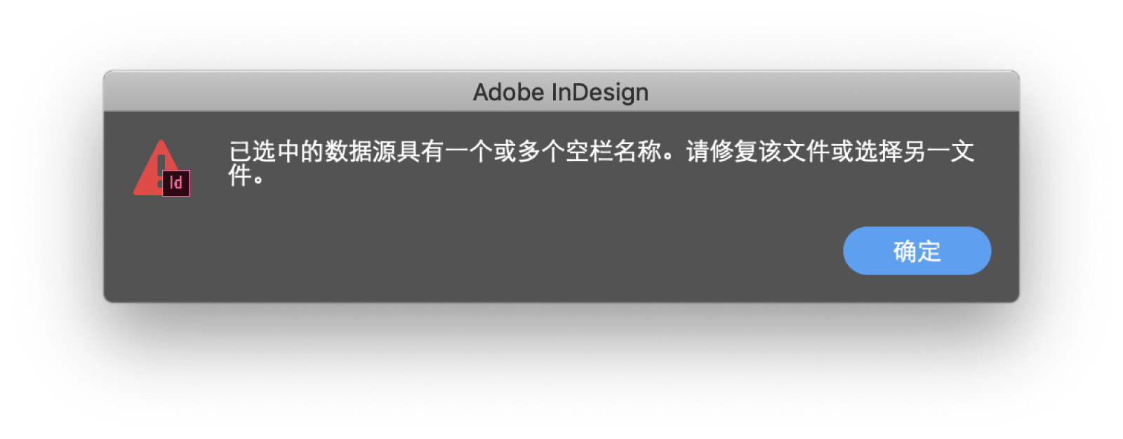 在数据合并的窗口里,点击右上角的小图标。「选择数据源」。如果是 Unicode 的格式文件,那 InDesign 就可以读取,可能会出现两种常见的错误情况。