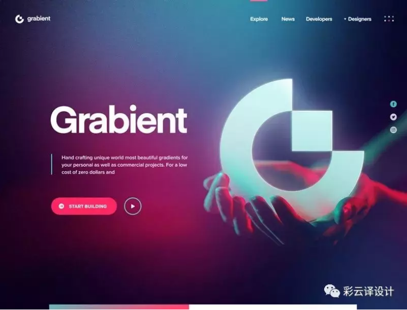 微渐变风格已经无法满足用户视觉上的刺激,从渐变颜色的跨度可以看出,设计师对于用色变得更加大胆了。(译者注:这种配色用的好会很好看,用的不好的话,也会很糟糕,对于颜色拿不准的同学,慎重使用。)